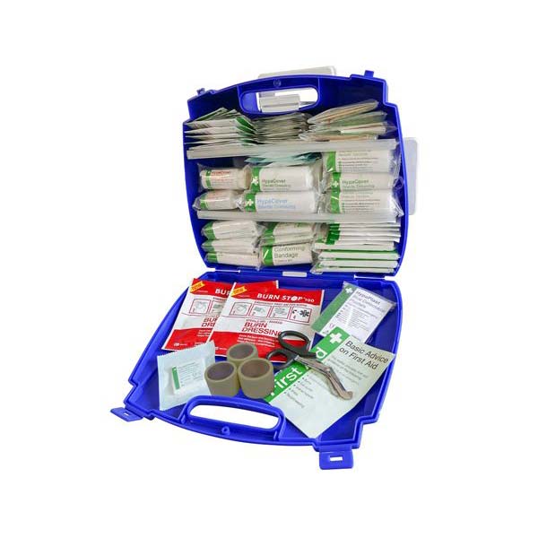 Made specifically for the food service industry this Catering First Aid Kit is well equipped with blue plasters, a well-known coloured plaster used to cover cuts when dealing with food. Critical for when accidents occur, the kit is supplied with blue microporous tape and blue finger dressings to adapt to any injury in the food industry. Perfect for SME’s (Small Medium Enterprises)